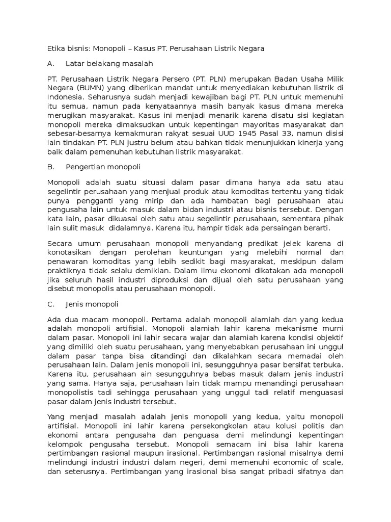 Analisis kasus etika bisnis pt. 17 juni 2015 07:59 19946 0 0 mohon tunggu. Etika bisnis mencakup bagaimana menata hubungan yang etis perusahaan dan seluruh pemangku kepentingan seperti hubungan perusahaan dan seluruh pemasok, pelanggan, karyawan, masyarakat sekitar, lingkungan, dan pemerintah.