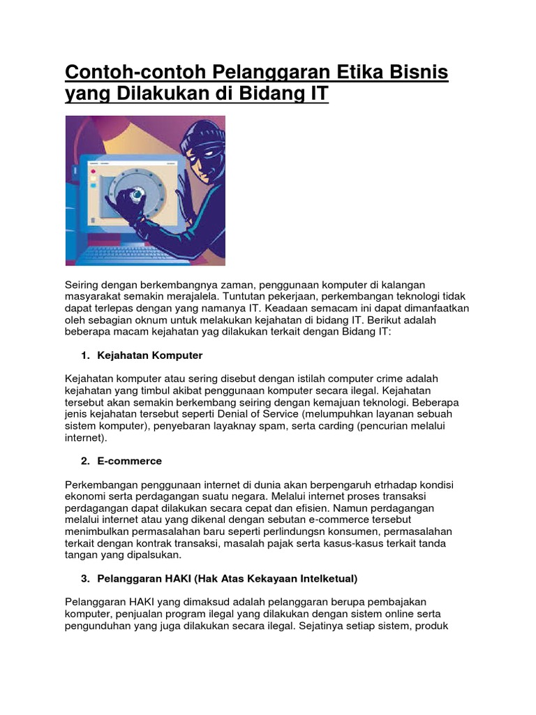 Contoh Pelanggaran Etika Bisnis Yang Dilakukan Di Bidang IT