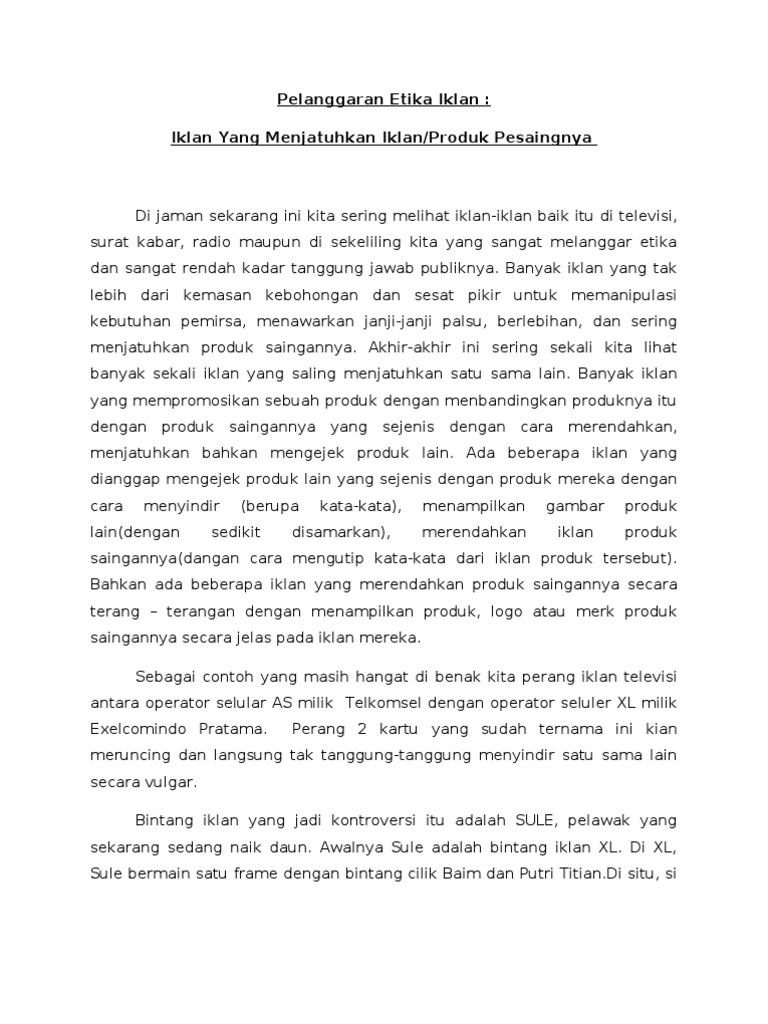 Contoh Pelanggaran Etika Bisnis dalam Iklan